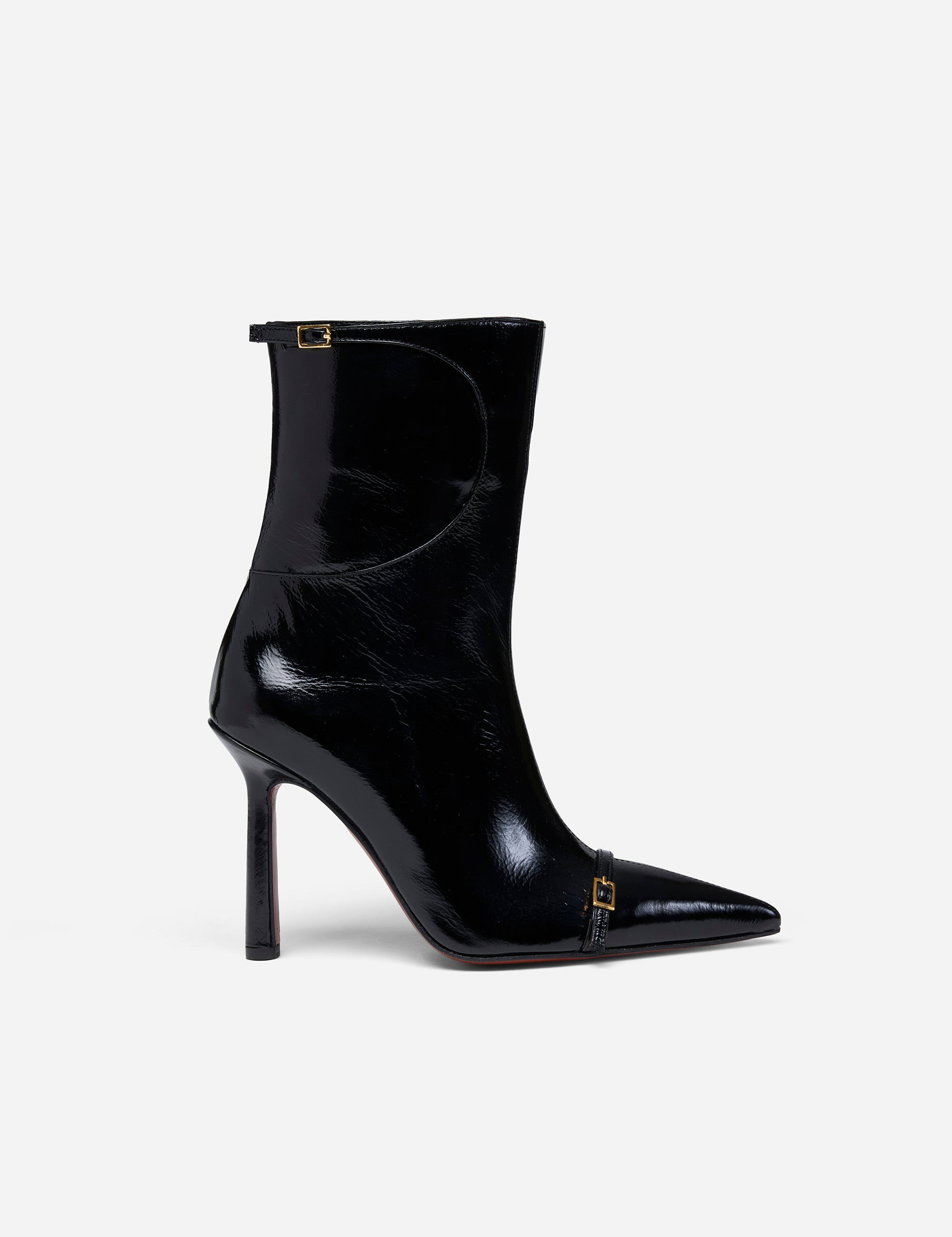 Pointy Toe Ankle Boots Black High Gloss
