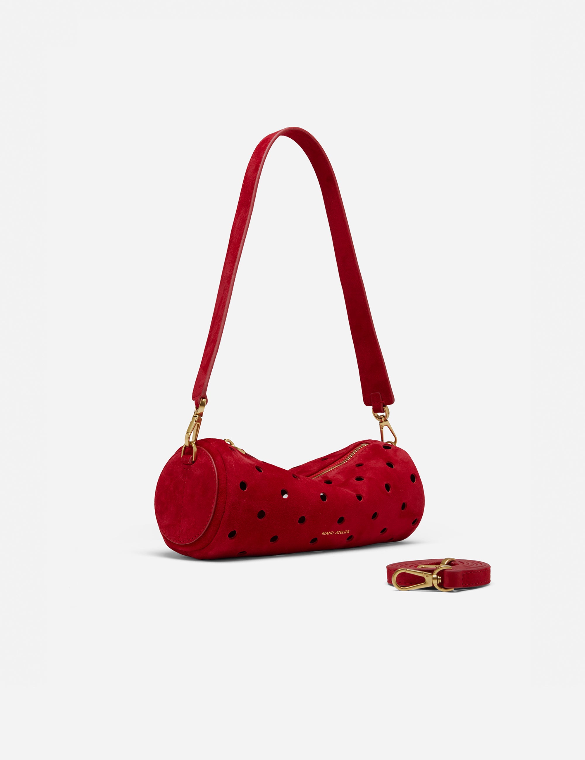 Mini Cylinder Perforated Ecru High Gloss & Black Suede