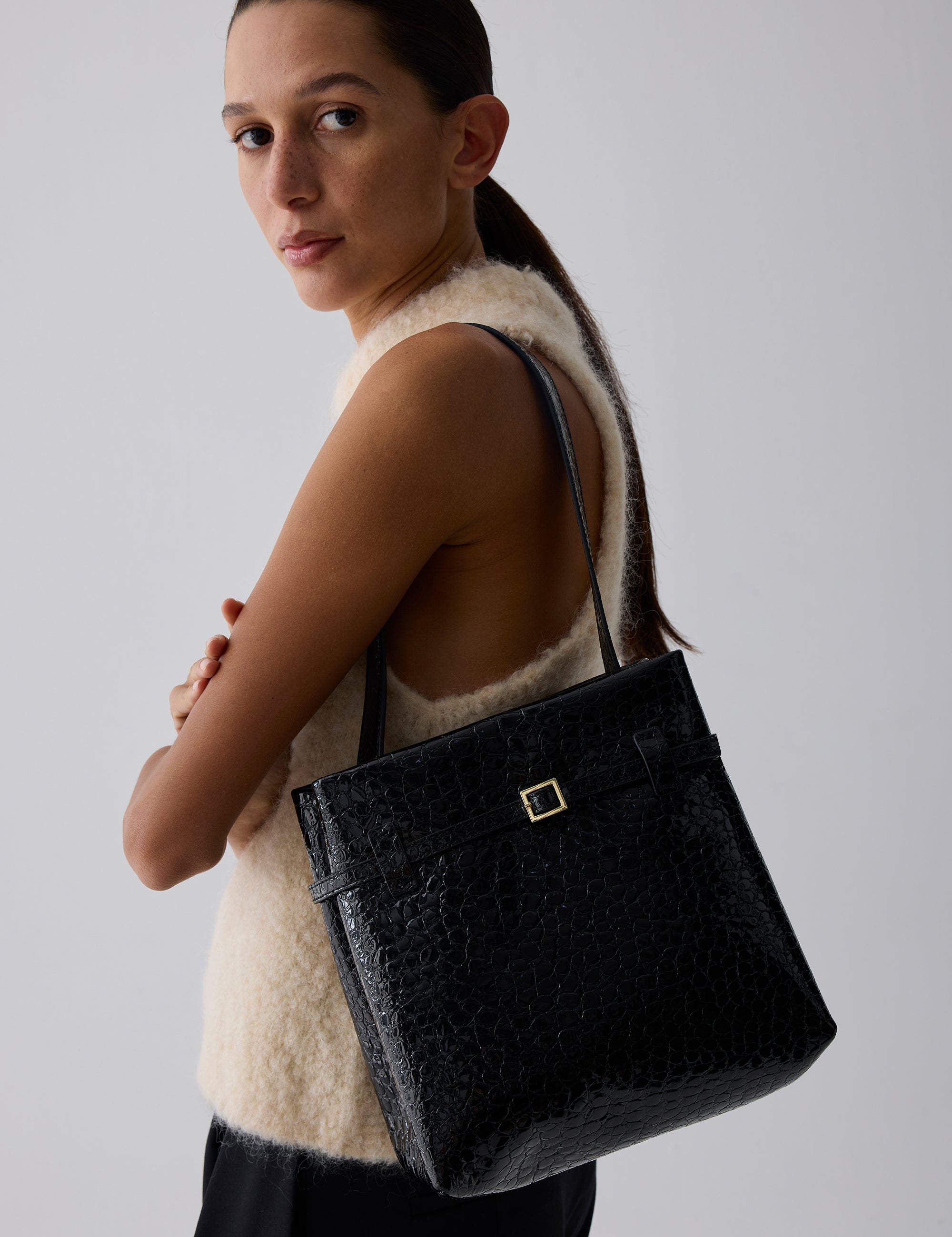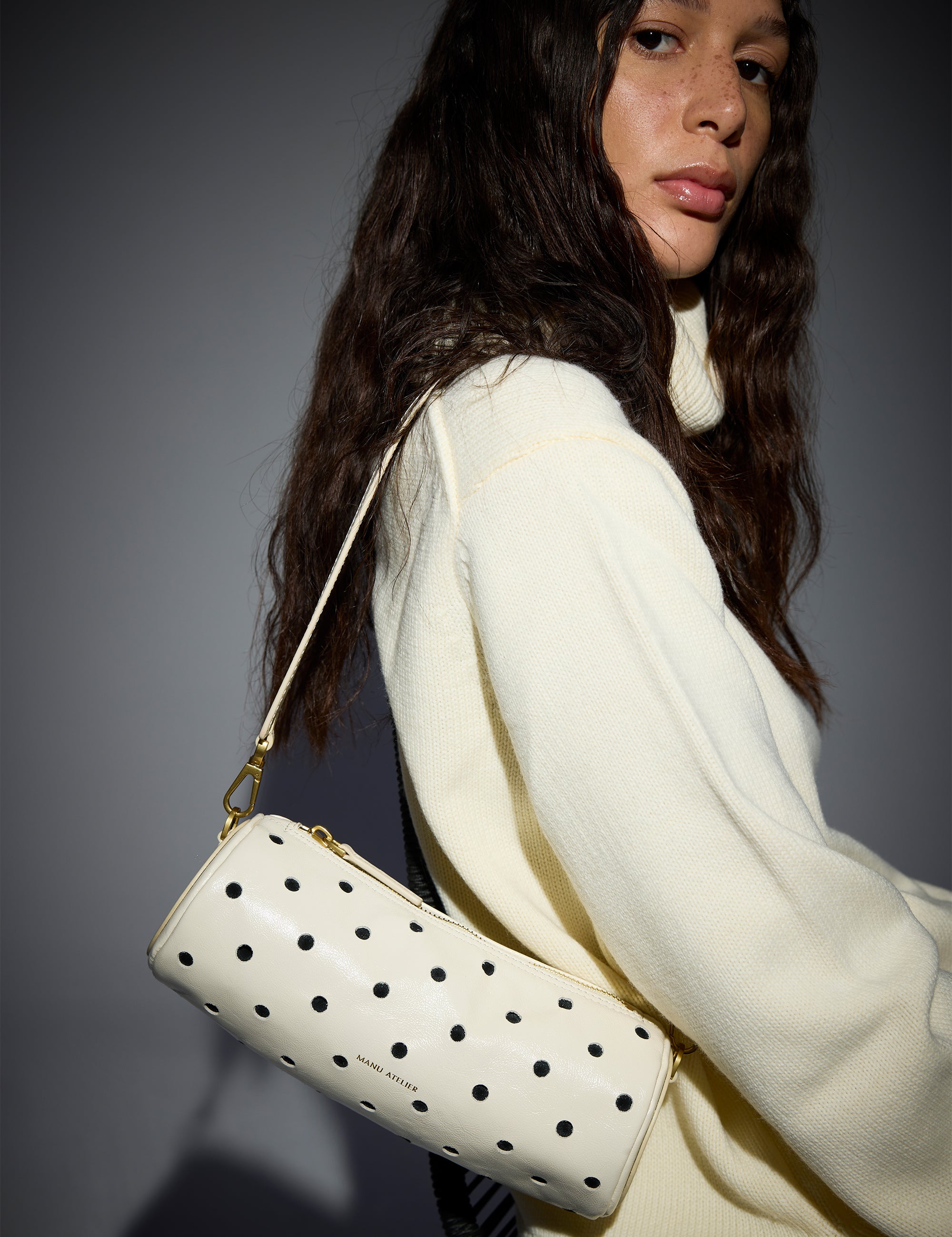 Mini Cylinder Perforated Ecru High Gloss & Black Suede