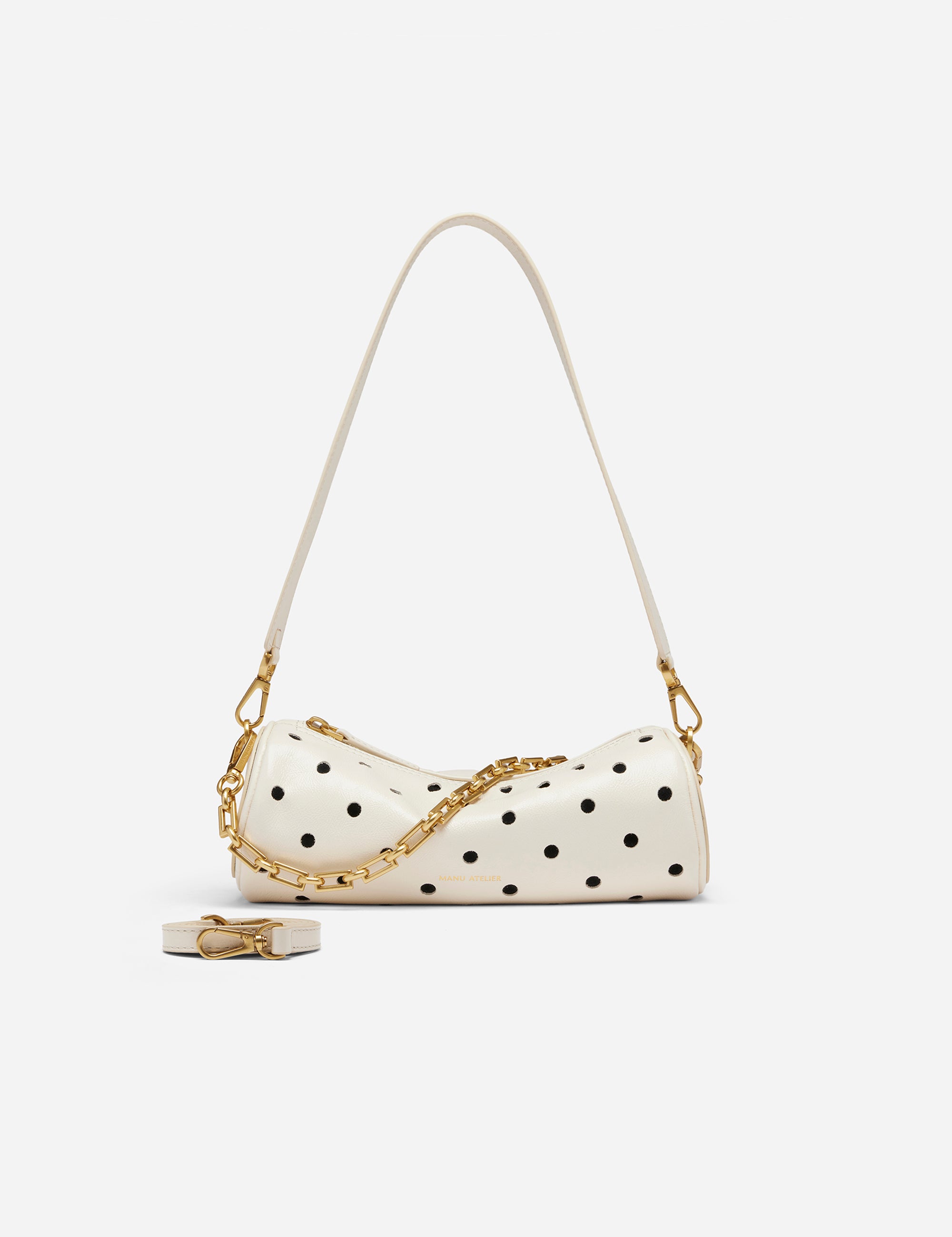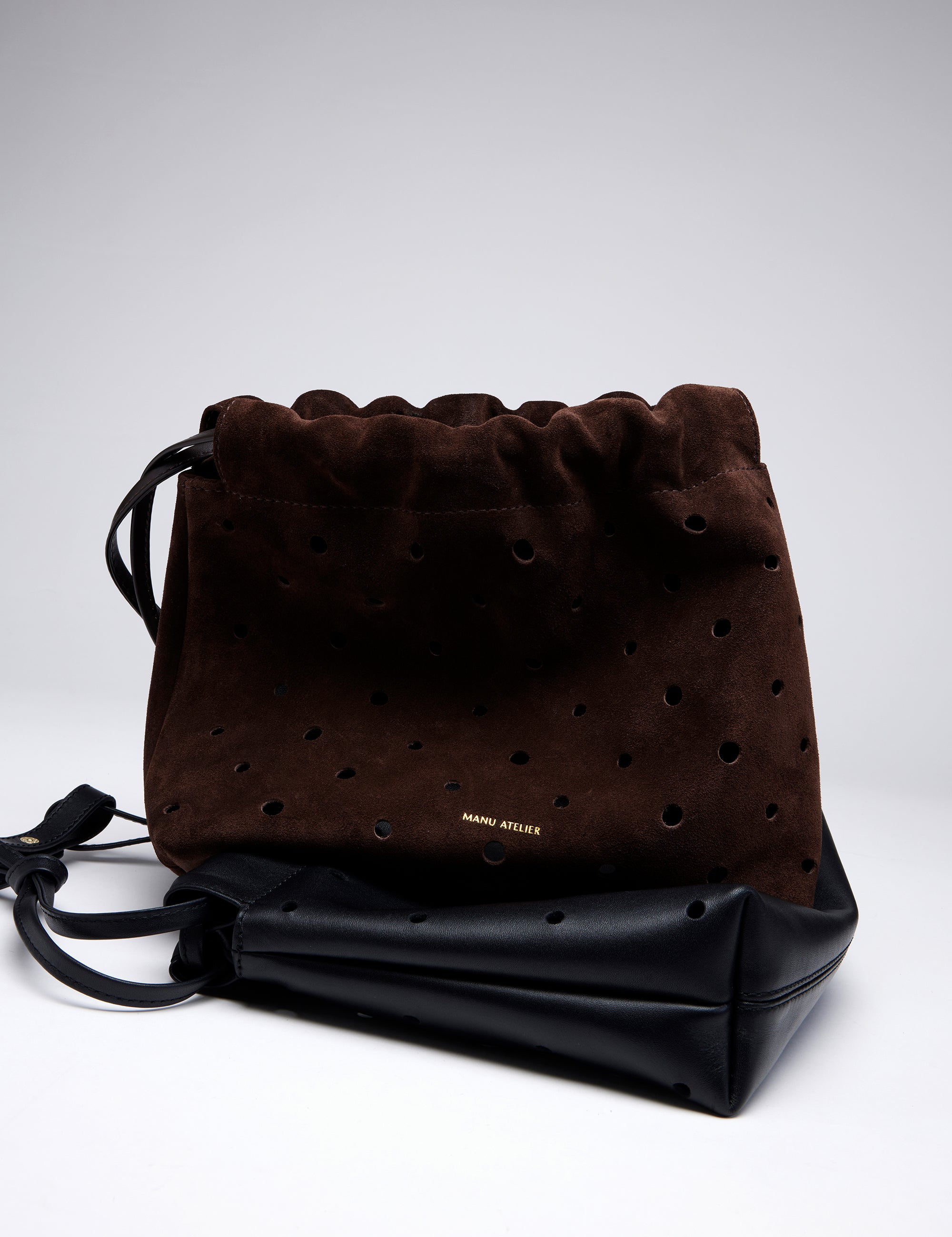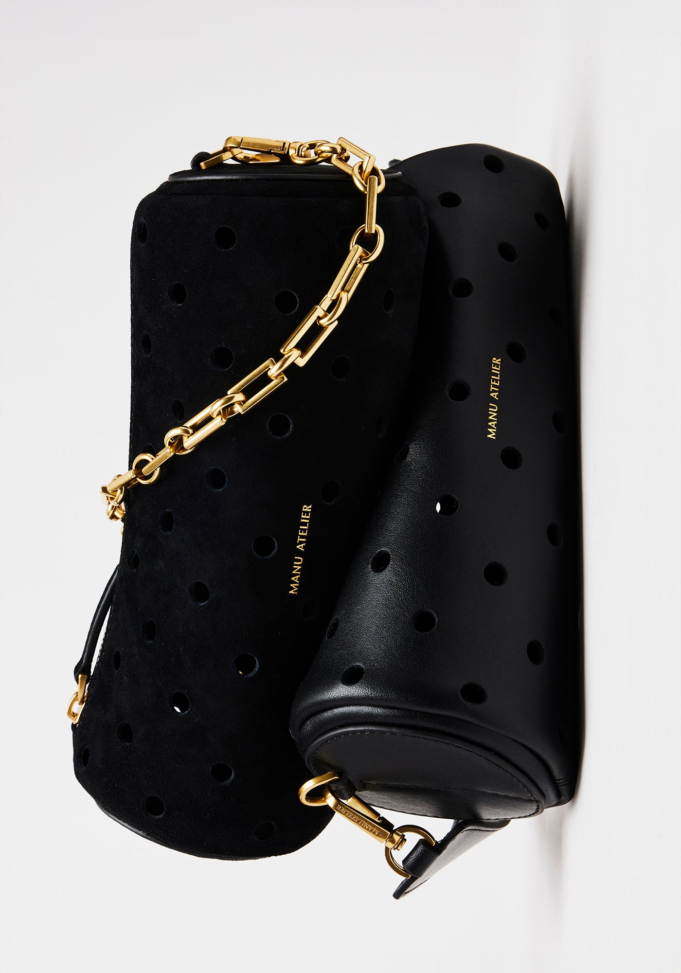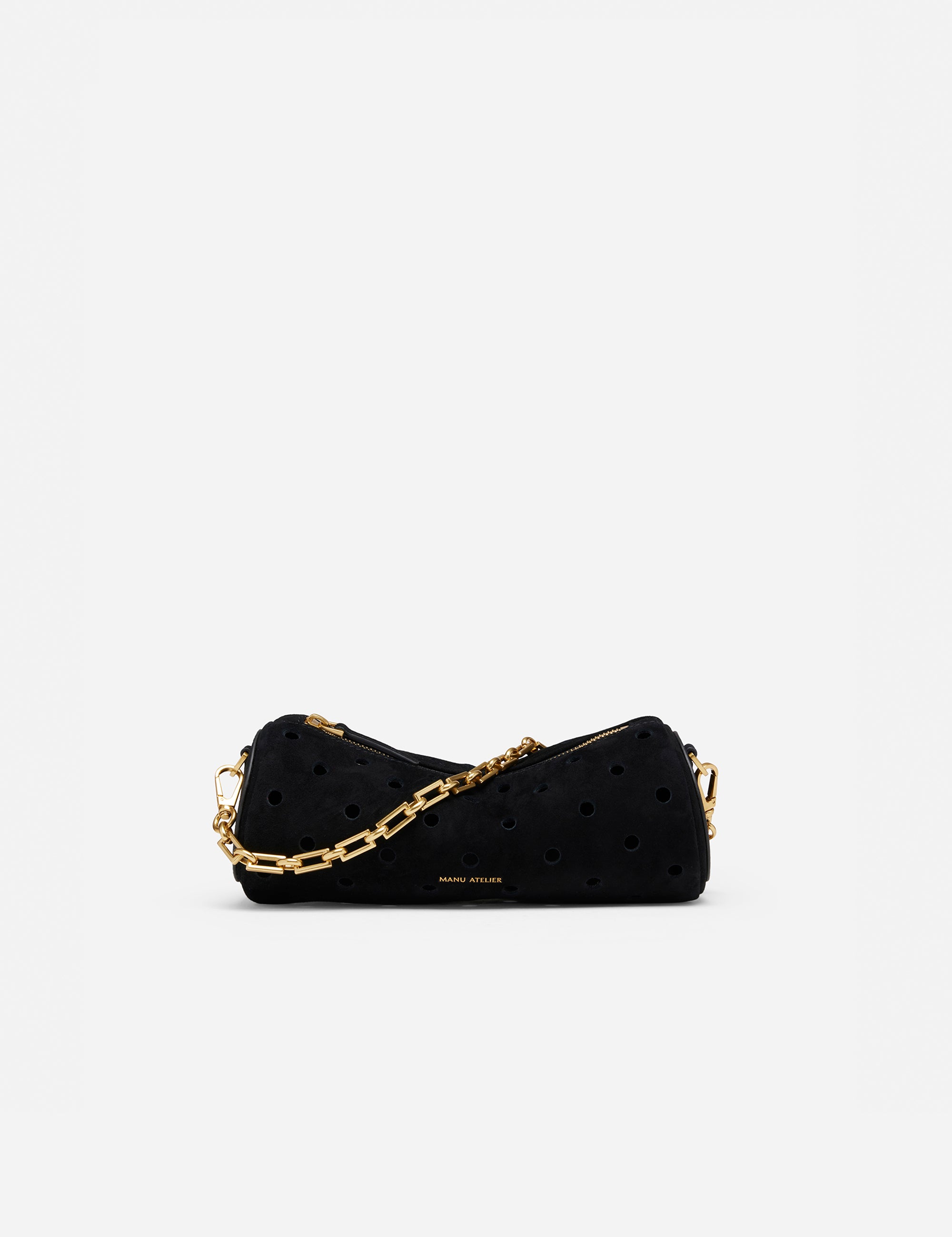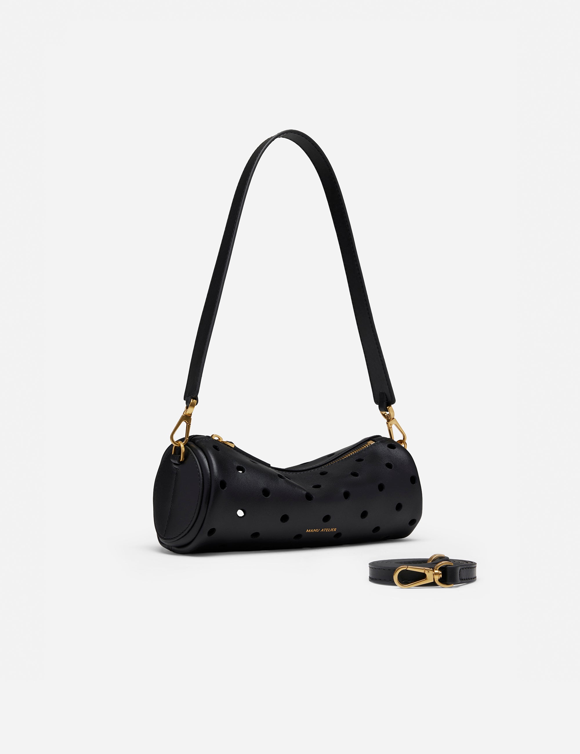 Mini Cylinder Perforated Ecru High Gloss & Black Suede