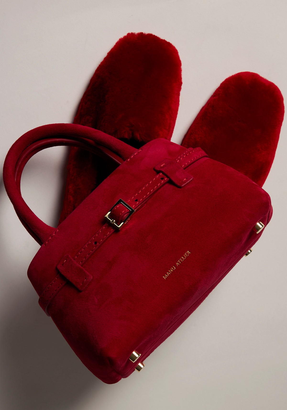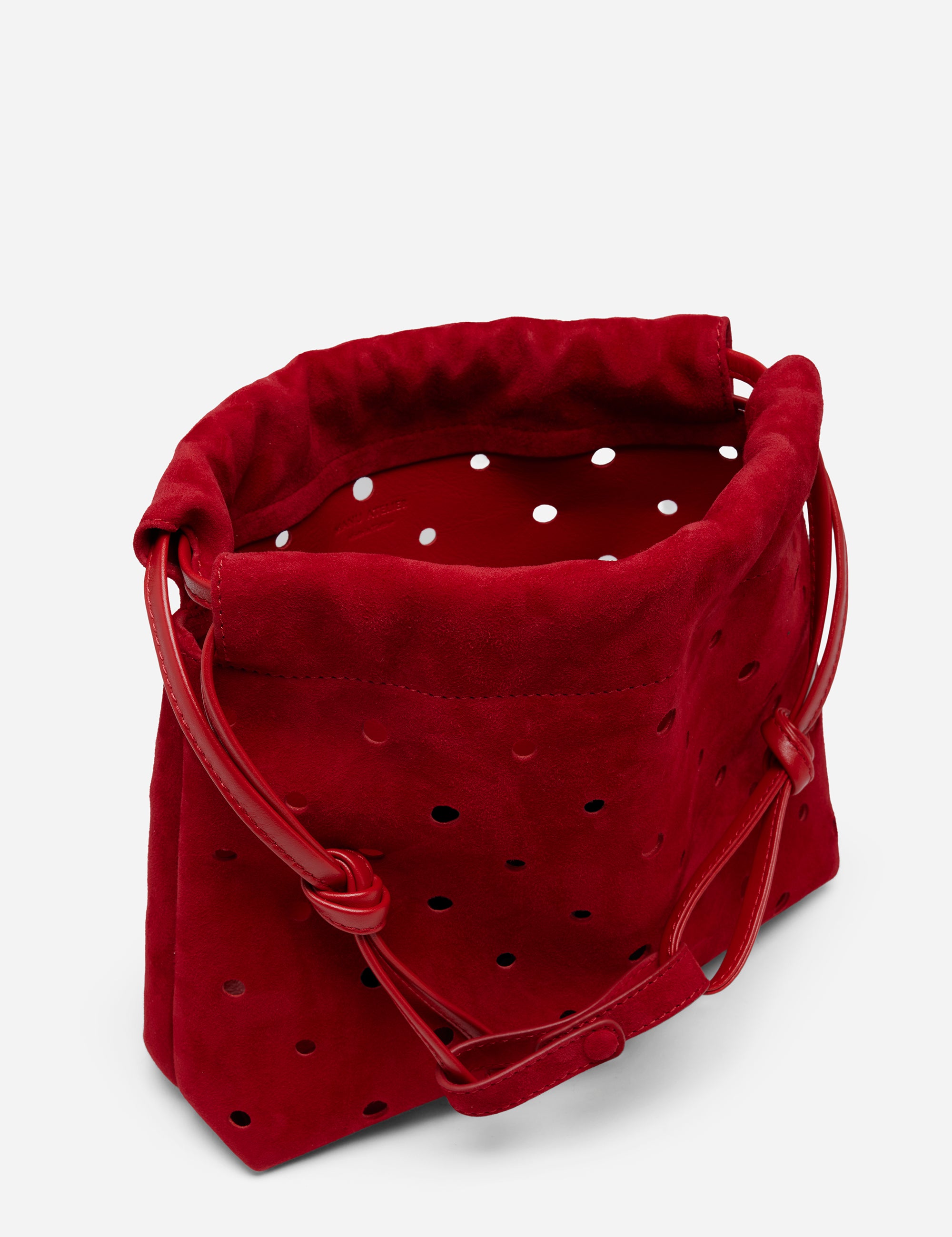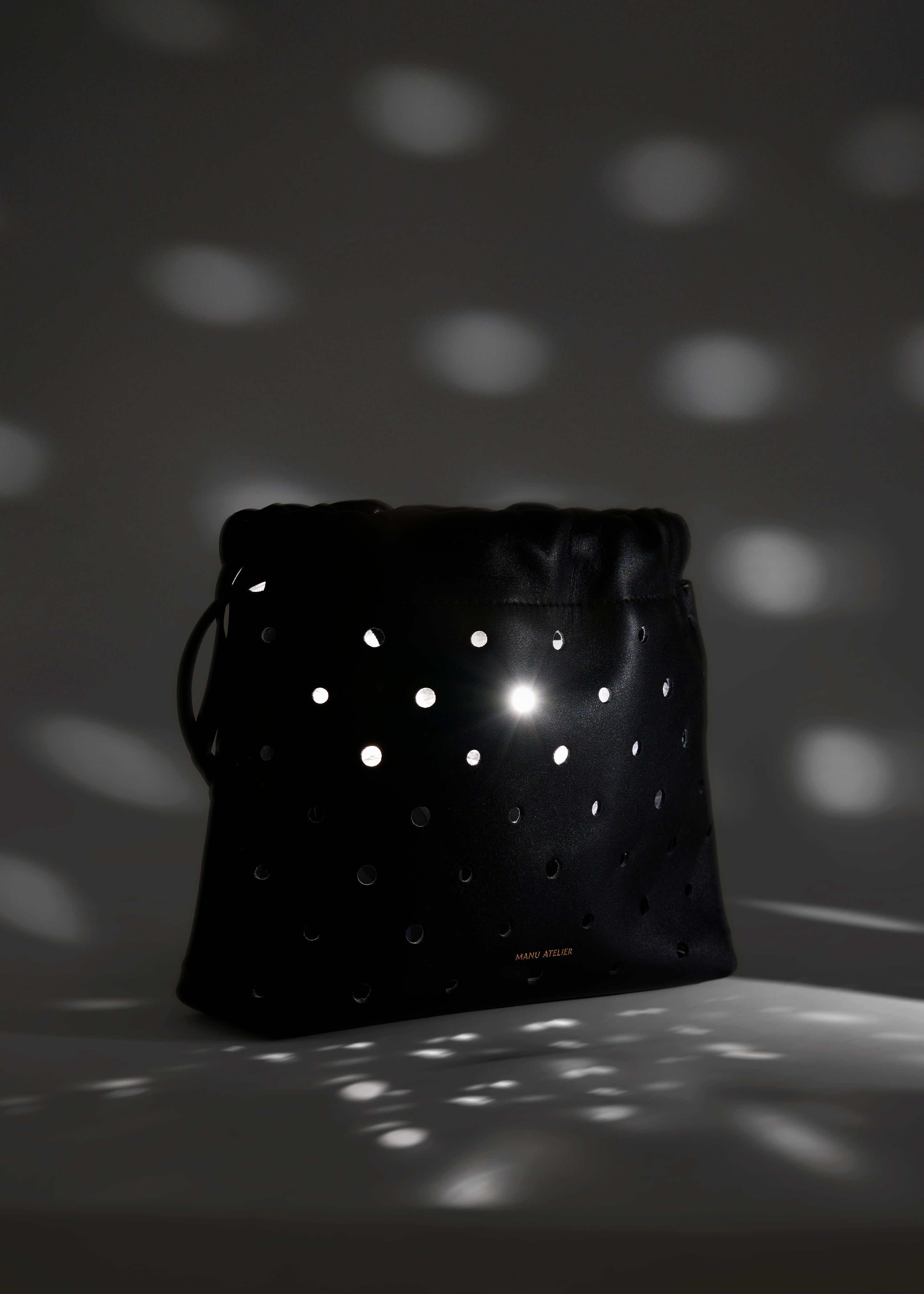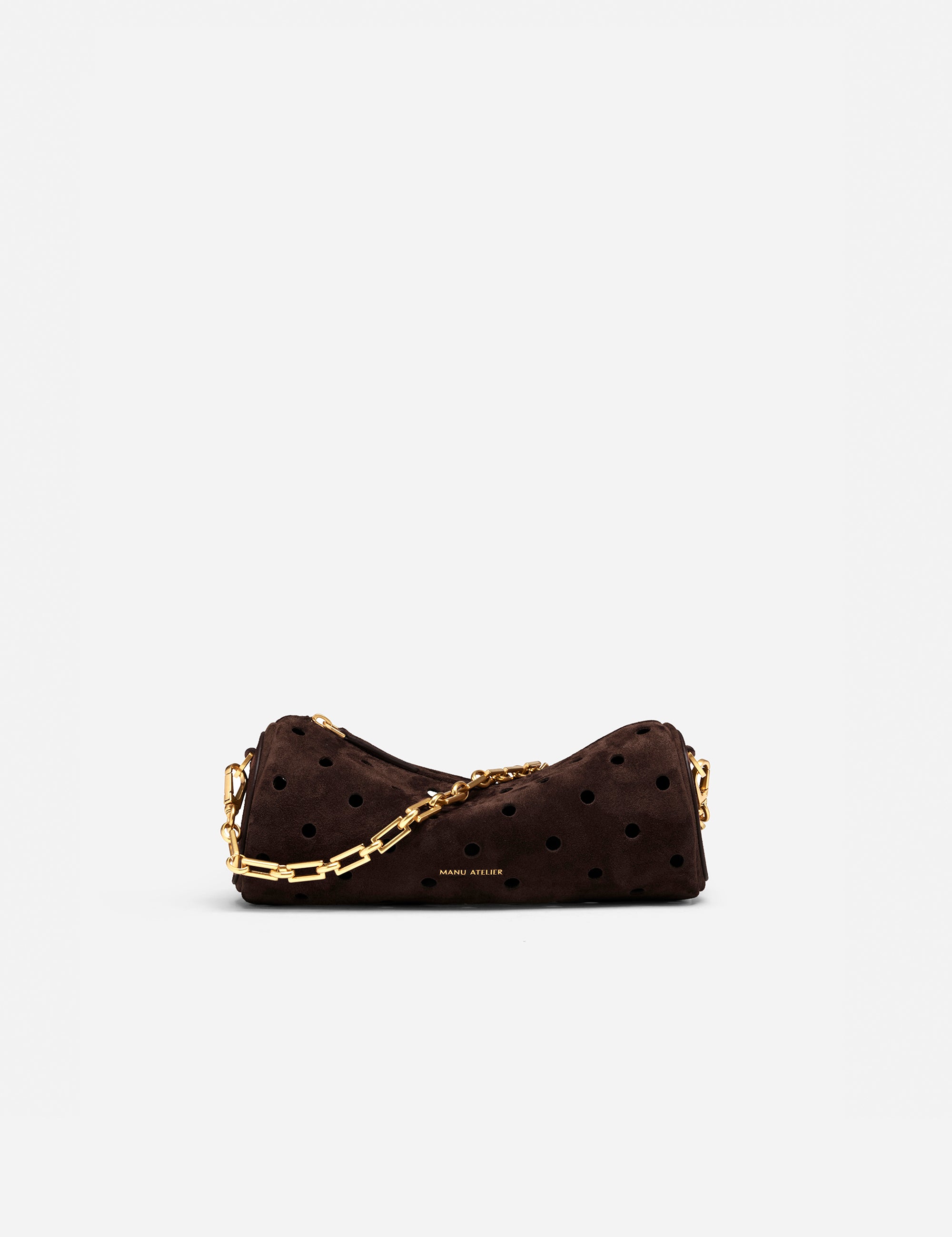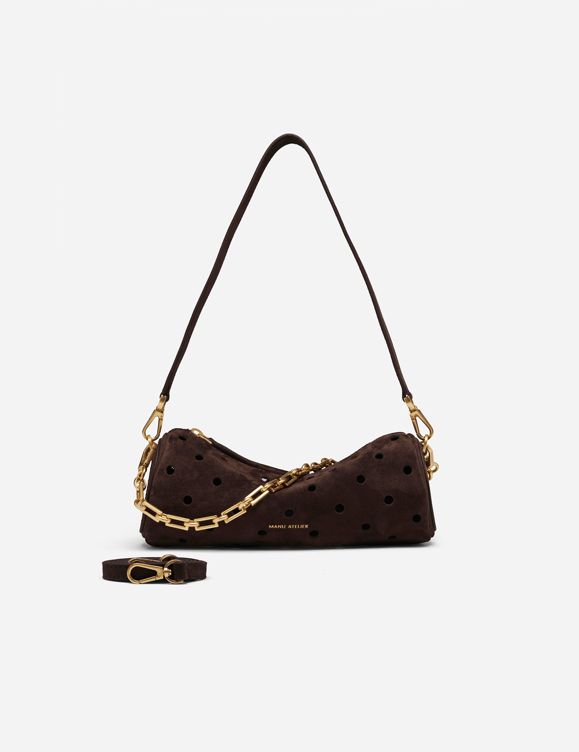 Mini Cylinder Perforated Ecru High Gloss & Black Suede