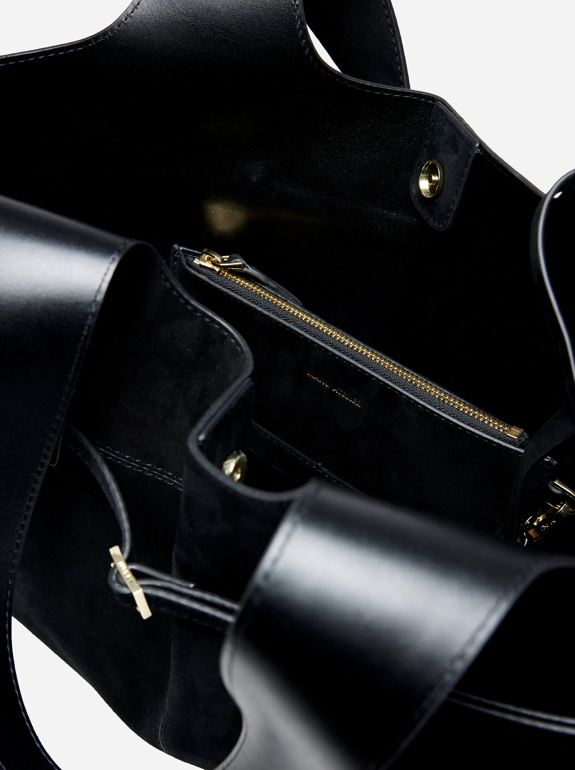 Its generously sized interior accommodates all your essentials, while the suede lining adds a discreet note of indulgence. A removable pouch offers smart functionality—perfect for keeping your smaller items secure as you move through the city.