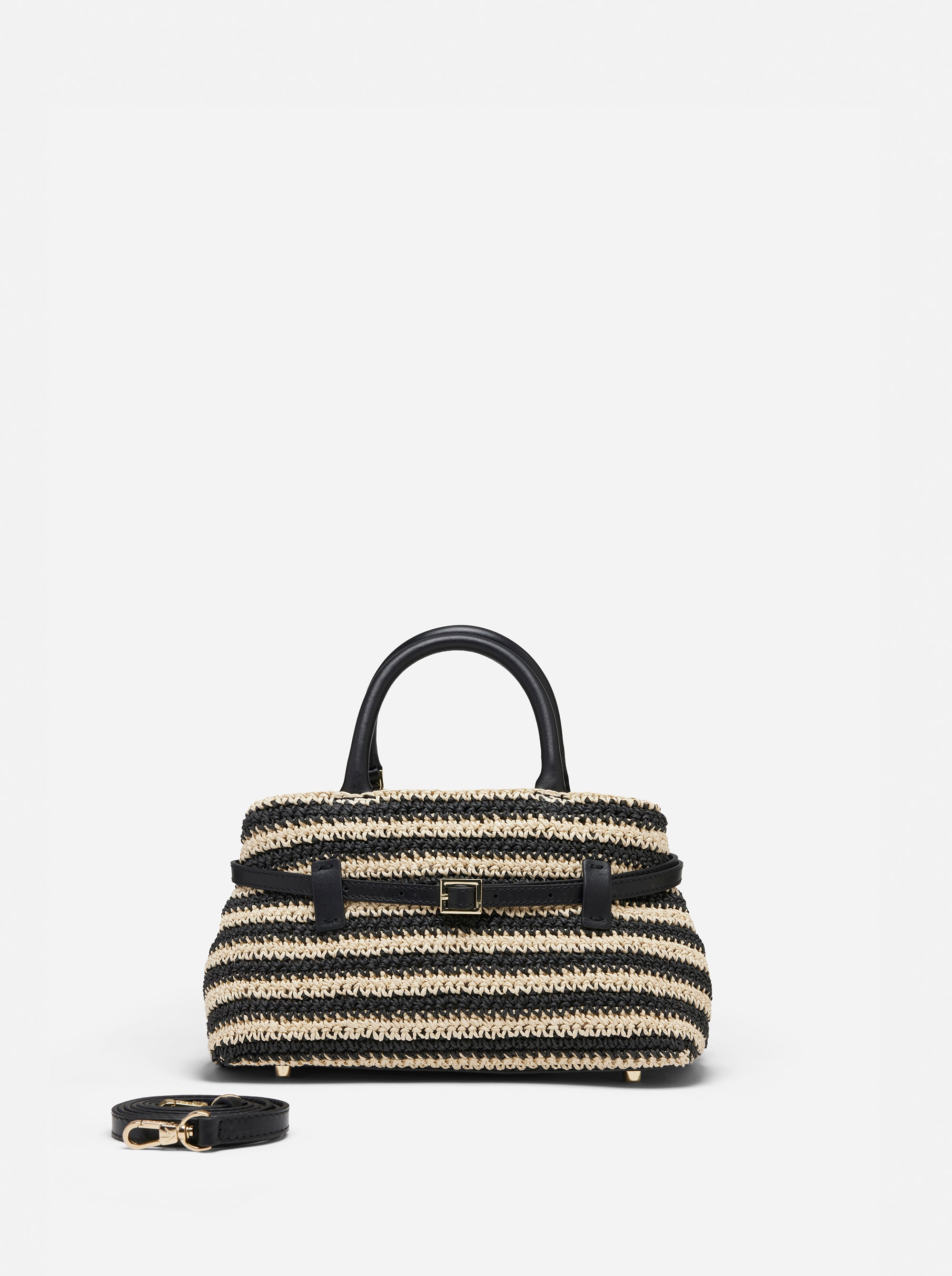 Ecru Handwoven Crochet & Black Soft Calf Leather