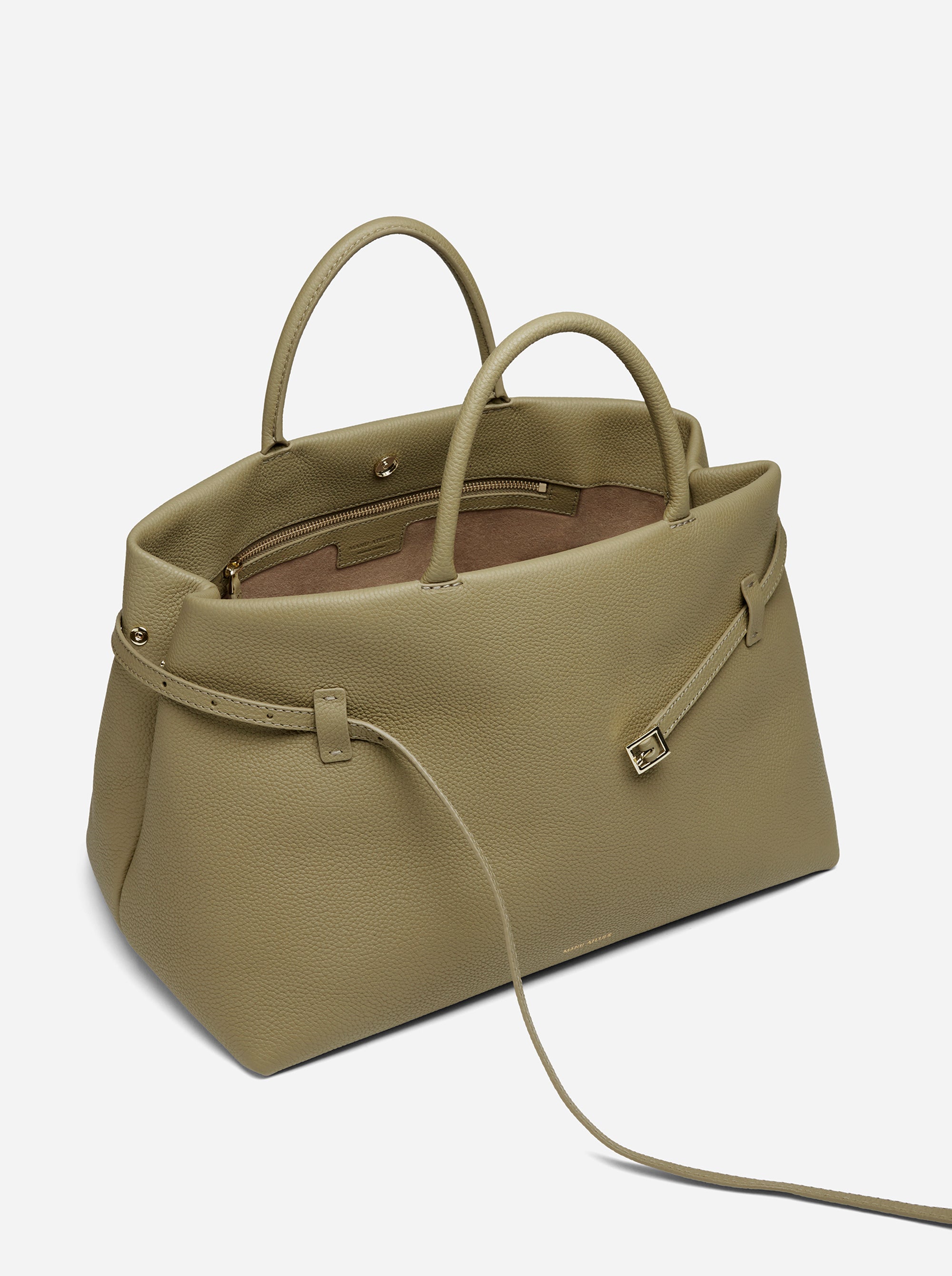 Interior zipped pocket with a Manu Atelier embossed logo