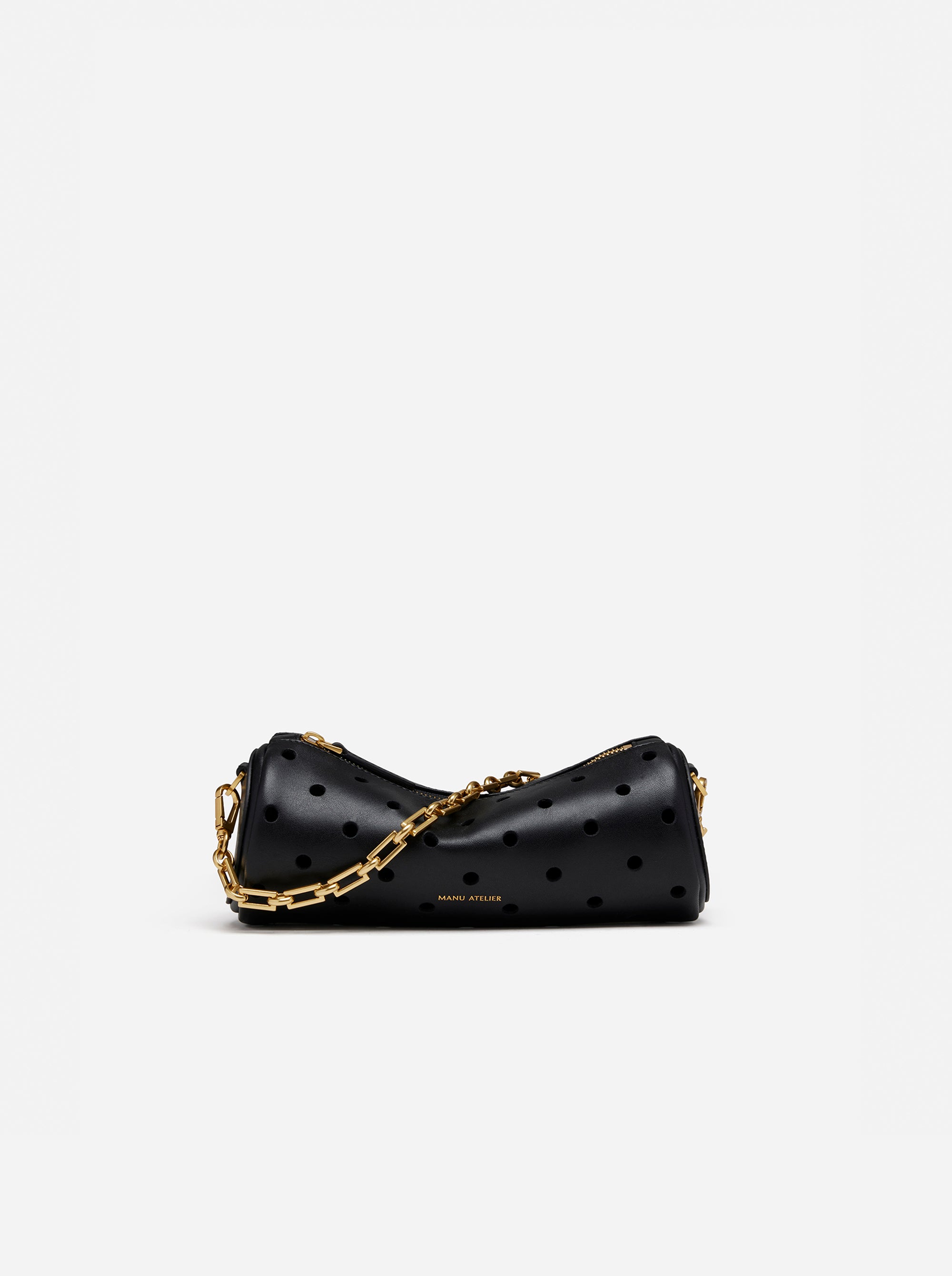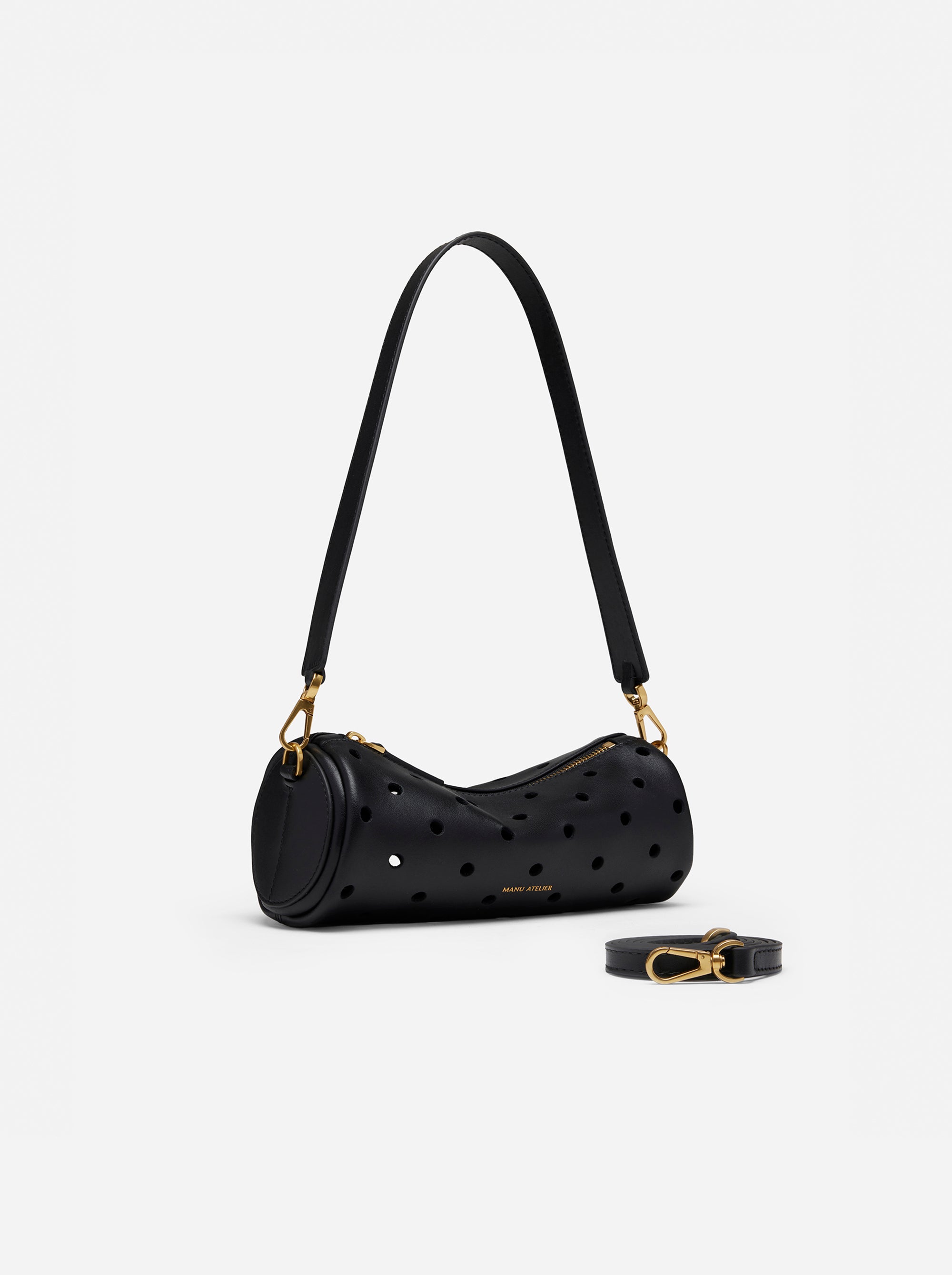 The Mini Cylinder Perforated brings a fresh, elevated take on Manu Atelier’s signature XX Mini Cylinder. Crafted from perforated leather, it highlights the quality of the material and the clean, precise construction behind the design. The signature rounded form stays true to the house’s iconic shape, while the perforations add a lighter, more modern character.