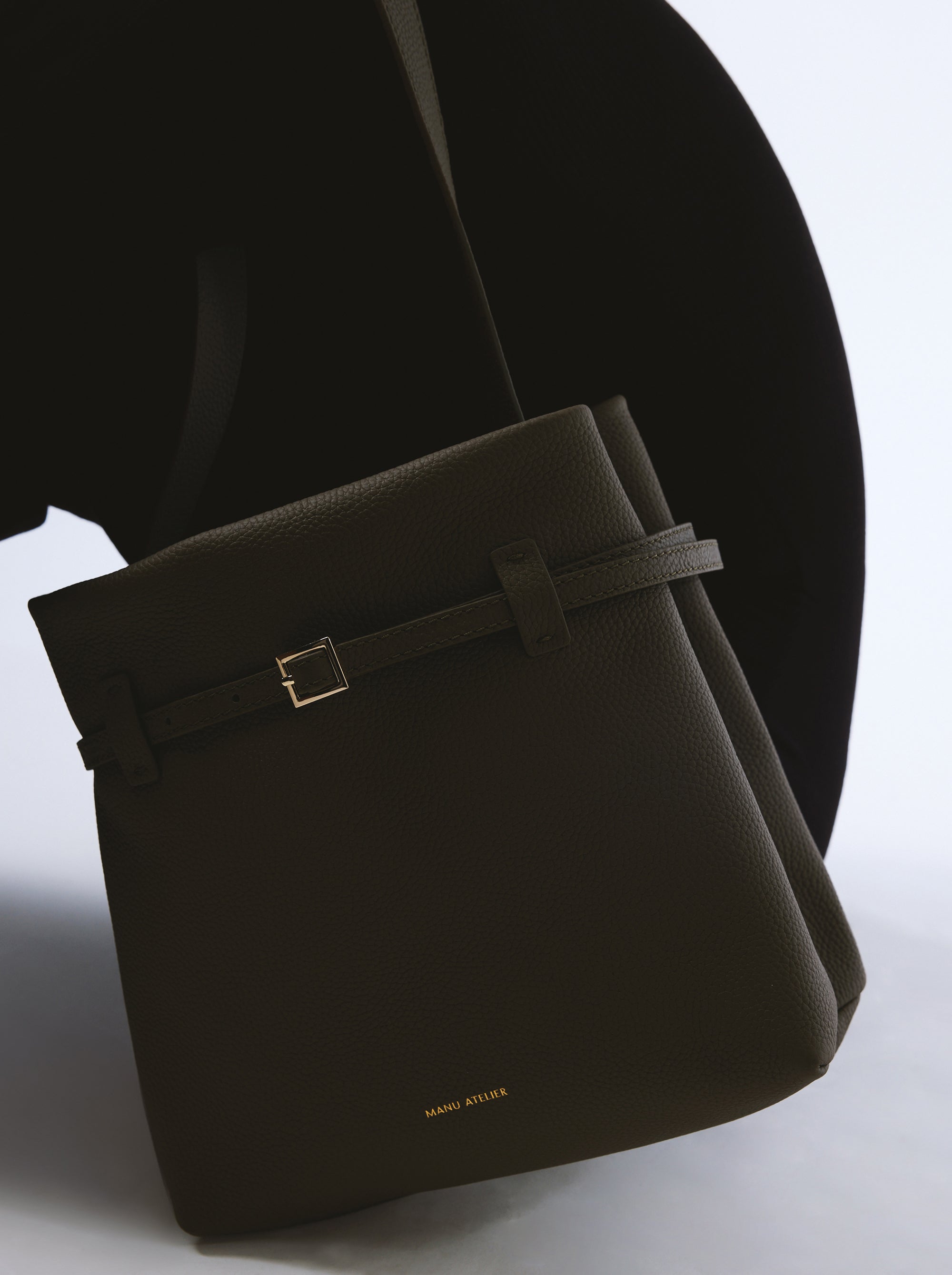 Discover the mini version of our signature Tote du Jour. The Mini Tote du Jour offers ample space for your daily essentials, including an iPad. Inside, a zipped pocket helps keep your small and important items organized. The adjustable leather belt with light gold-toned metal buckle adds a touch of sleek distinction. Magnet closure offers an ease of use. The signature light-gold toned “Manu Atelier” logo is embossed on the bottom center of the front panel. With its sleek design and practicality, the Mini Tote du Jour enhances your style while simplifying your day-to-day life.